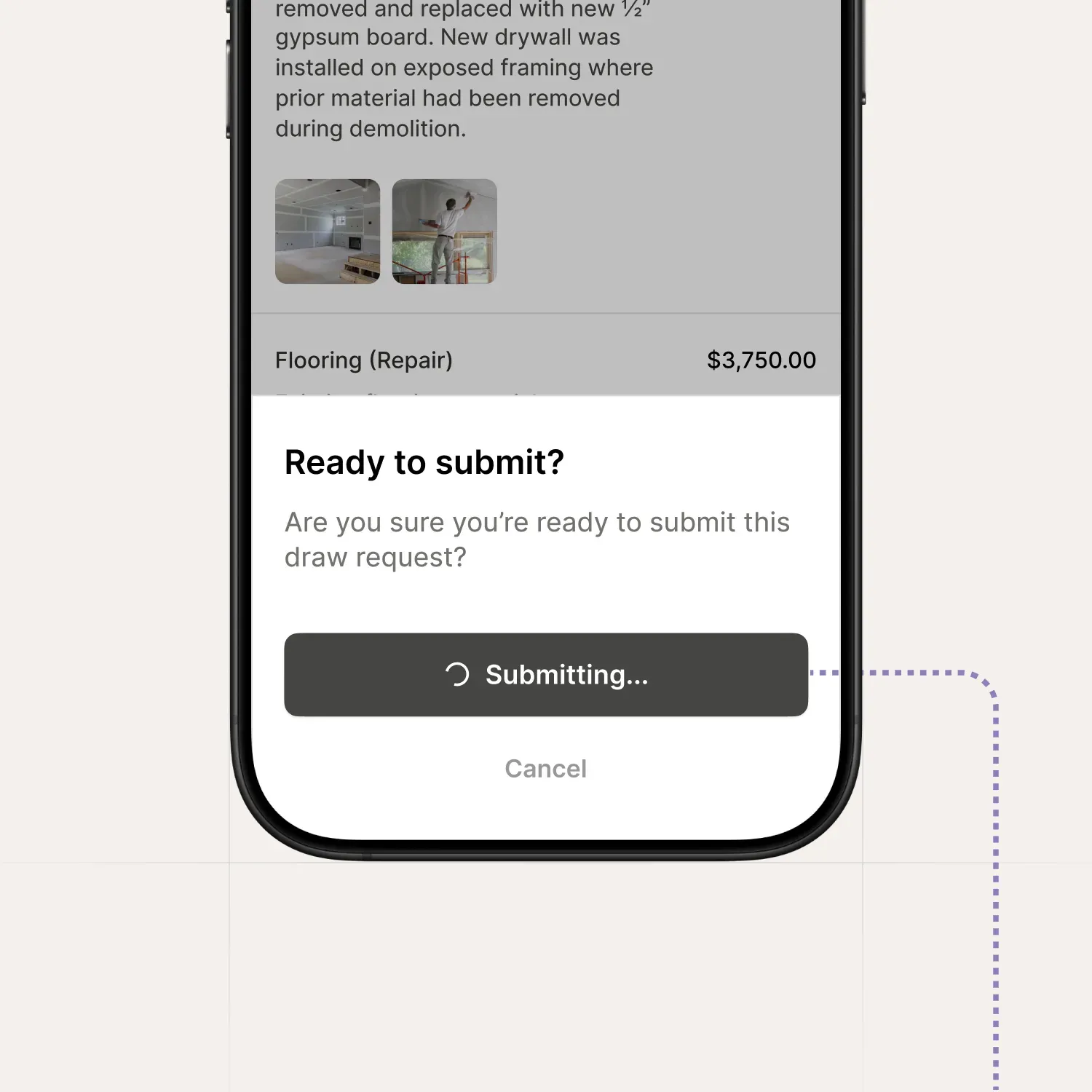 Borrowers submit draw requests through the portal with photos, notes, and line items—each tied directly to the approved budget.
