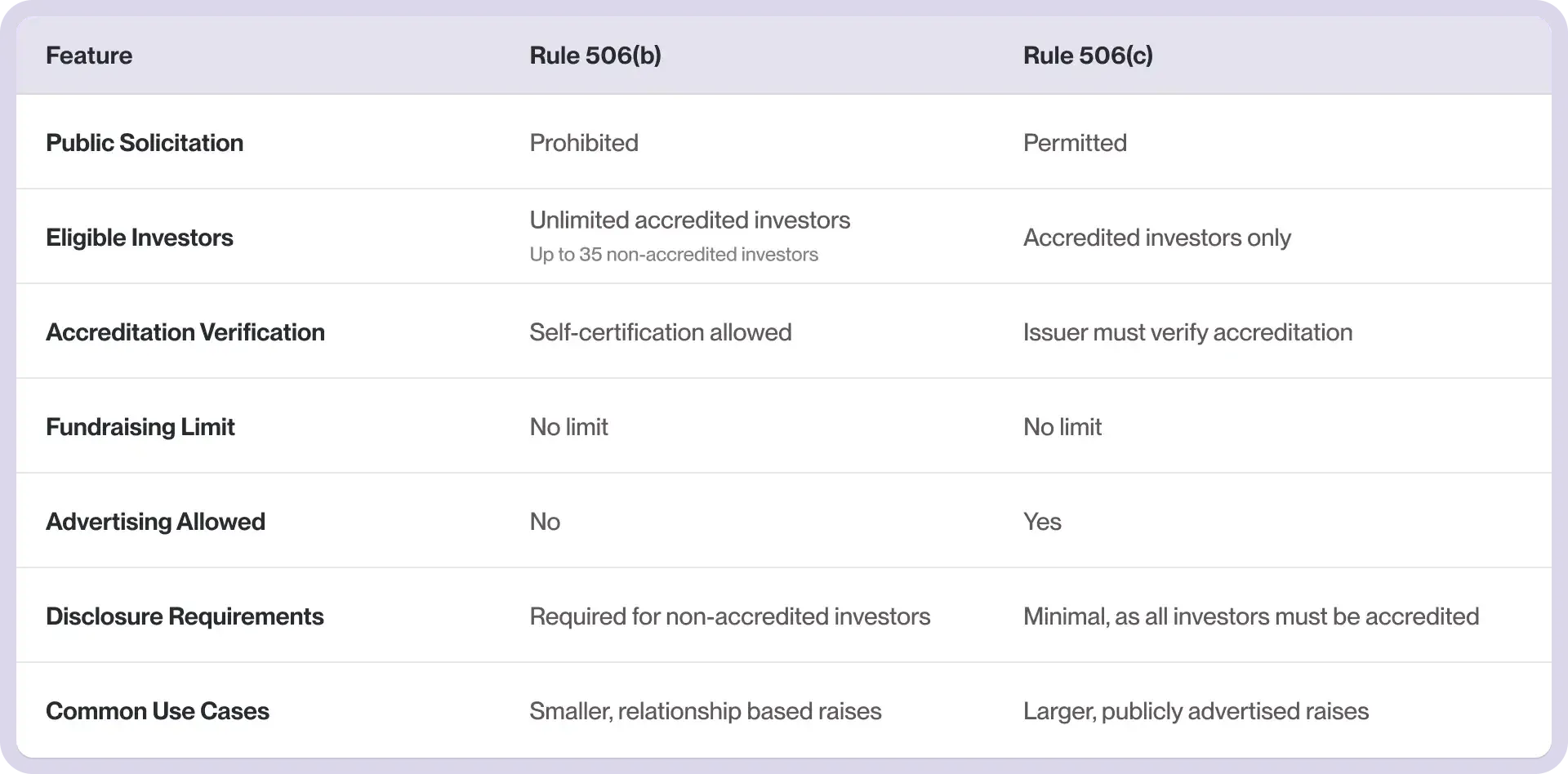 Comparison Table: Rule 506(b) vs. Rule 506(c)