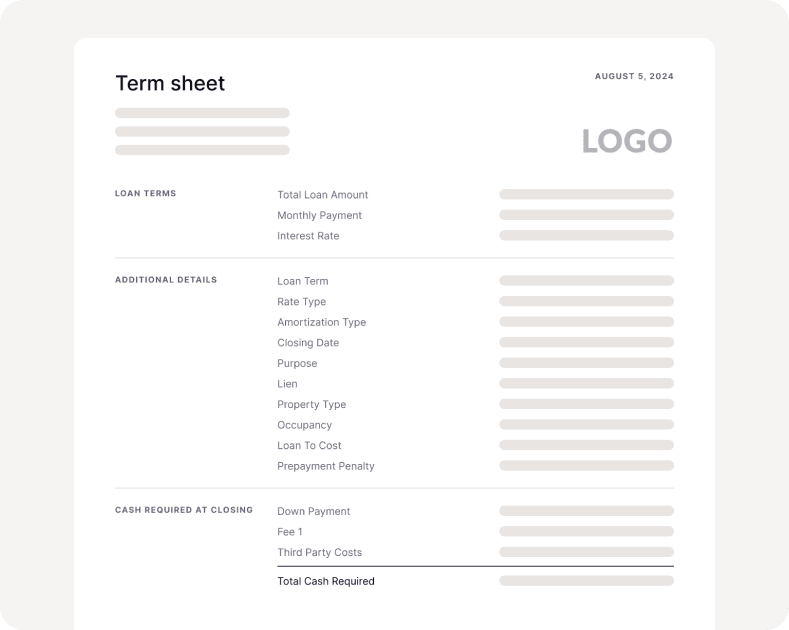 Estimate total cash required at closing, including down payment, fees, and third-party costs.